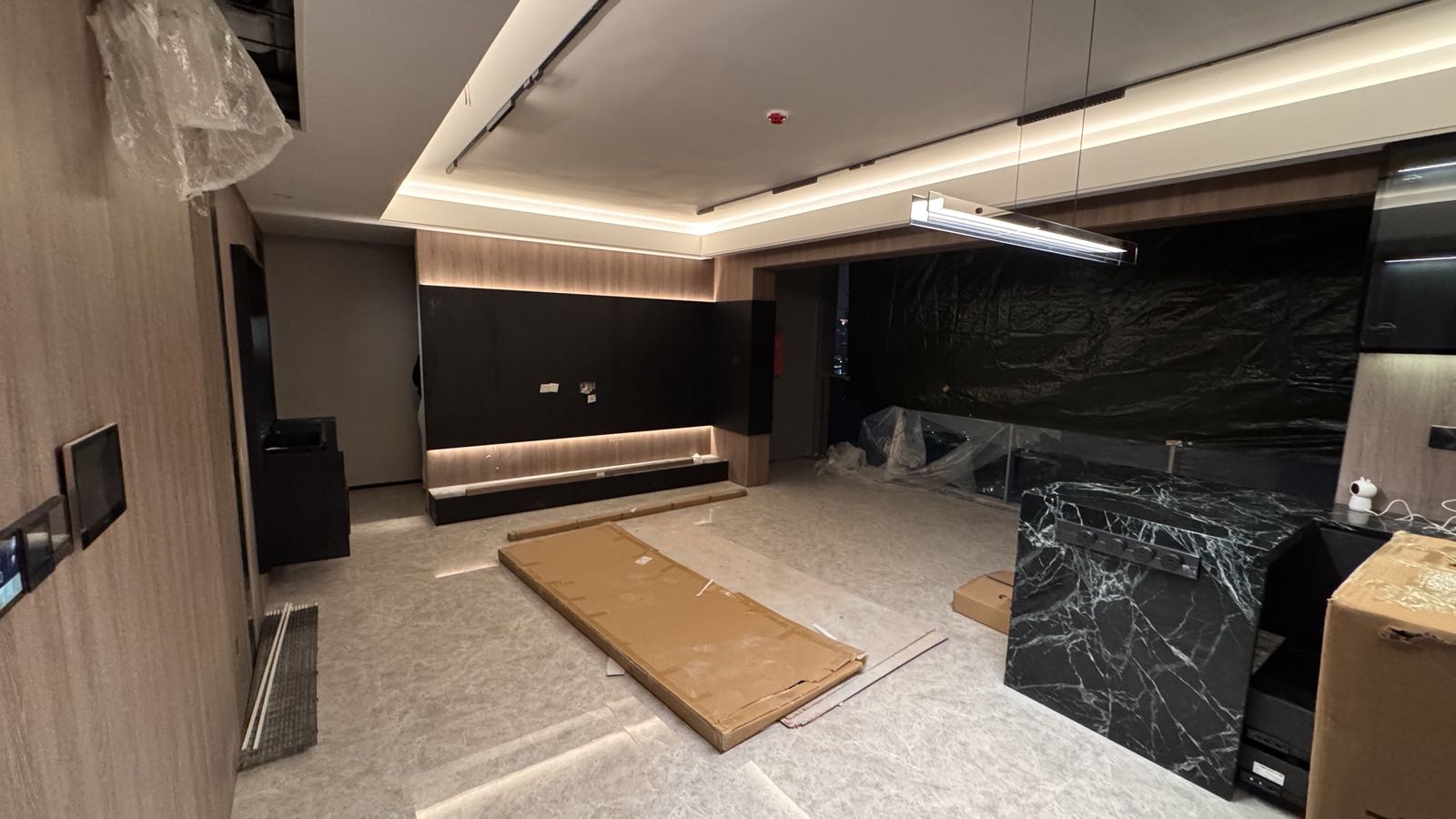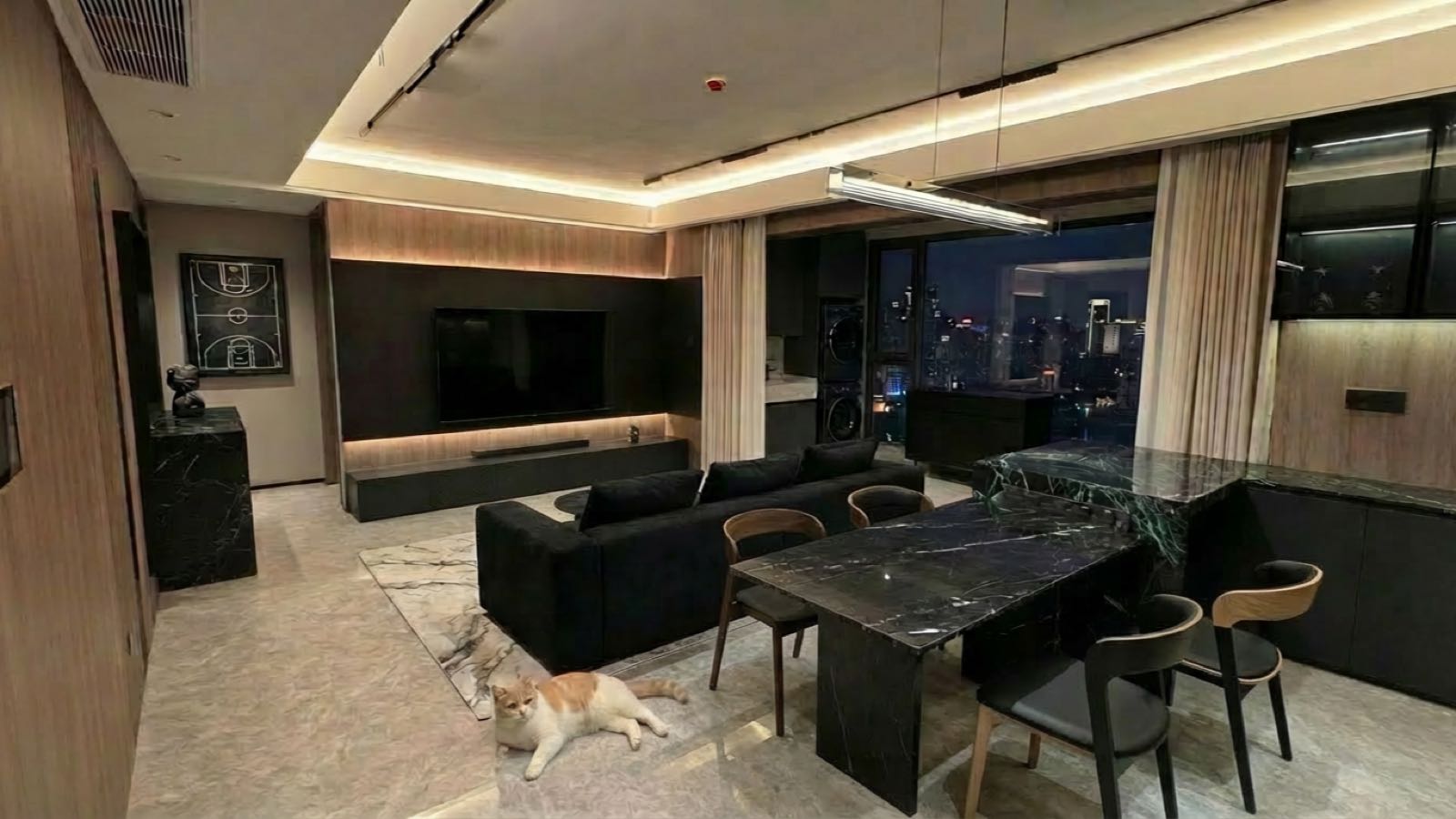 输入一张正在装修的照片,让他帮我设计设计,带我想要黑色沙发、家里小猫之类的需求 输出的设计图效果真的不错: