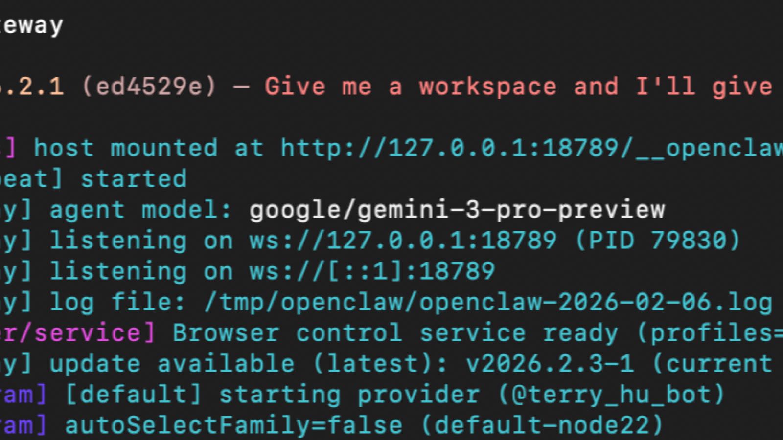 之后终端里执行openclaw gateway启动程序
